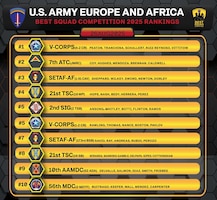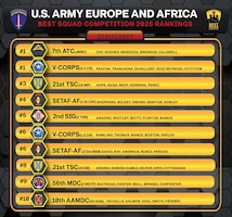 Teams from across U.S. Army Europe and Africa will meet at Grafenwoehr Training Area, Germany, to compete for the title of Best Squad, August 20-28, 2025.